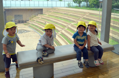 ☆2才児クラスおやつ散歩☆ 郷土館 2才児クラスはおやつを持って郷土館へお散歩に出かけました。元気に走り回ったり、館内に入って中を見学したり!お外で食べるおやつは、いつもと違う雰囲気で美味しかったね。 |