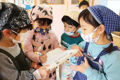 注文がそろいました。 給食の先生に伝えるよ。 |