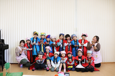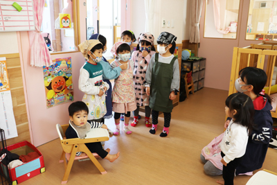 配達を終えたゆり組のお友だち、お腹もペコペコです。 美味しい給食を沢山食べました。 |