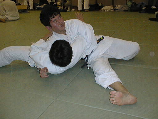 Once you move front, and hold him by "Kesa-gatame". Your right hand attached under his armpit.