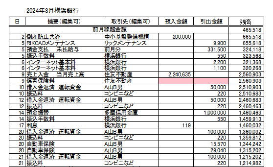 - 月毎のシートに表示されます。シートは会計期間の並びです。