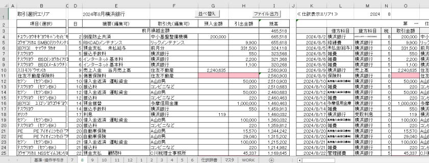 EXCELの画面上で、1か月分の仕訳の科目等確認を一気に出来ます
