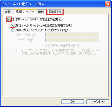 「受信メールサーバーと同じ設定を使用する(U)」を選択します。