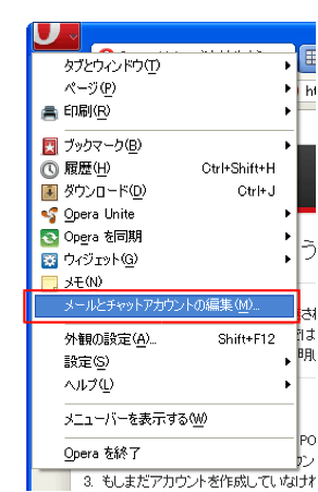 左上の「メニュー」から「メールとチャットアカウントの編集」をクリックします。