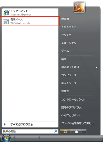 スタートメニューから「電子メール(Windows メール)」をクリックします。