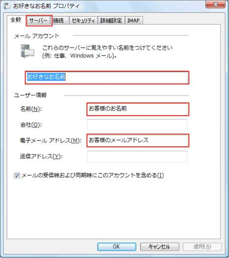 | 受信サーバー(IMAP) |